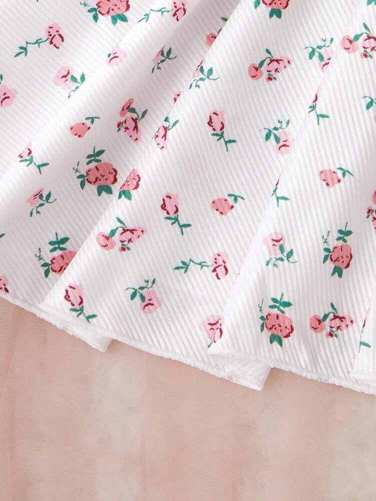 This romantic two-piece pajama set features a white rib-knit camisole with delicate lace trim and a ditsy floral pattern, paired with matching mini shorts. Designed with a slim fit and spaghetti straps, the deep V-neck top offers breathable comfort, while the high-stretch fabric ensures freedom of movement. Ideal for summer nights at home or private parties, this set combines style and comfort with easy care—machine washable with soft detergent. Perfect sleepwear for teens seeking a blend of elegance and practicality.